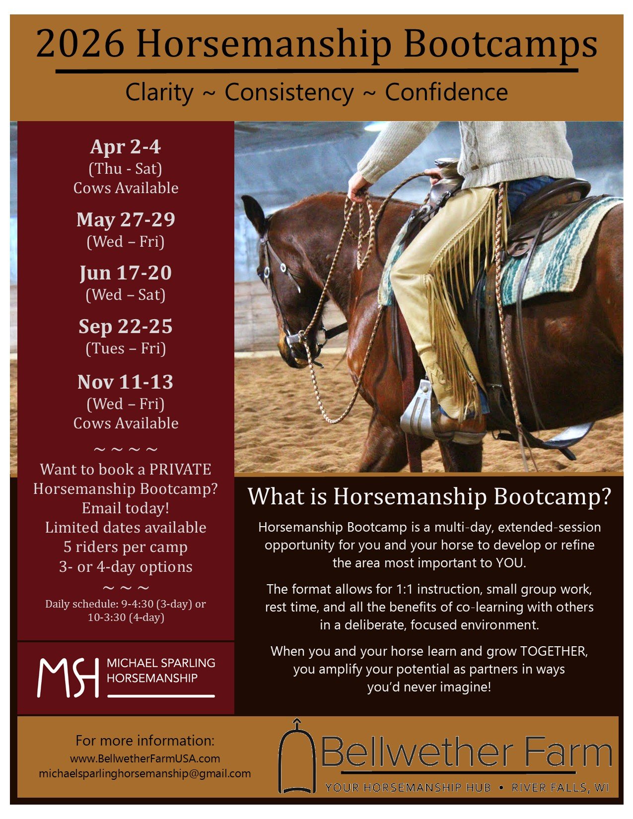 AM class: Foundation Horsemanship (Groundwork) PM Class: Horsemanship (Riding)